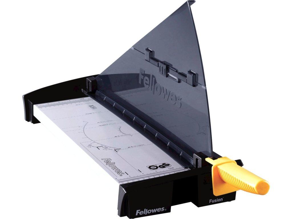 Fellowes Fusion A3Páková řezačka formátu A3 vhodná pro použití ve středně velkých kancelářích pro řezání papírů, fotografií nebo plastových folií. Disponuje kvalitním nožem z nerezové oceli a krytem SafeCut, který minimalizuje riziko poranění. Kapacita řezu je až 12 listů formátu A3. Zařízení je vybaveno vodicím pravítkem pro všechny velikosti a posuvným úhelníkem. Kovová základna s integrovanými protiskluzovými nožičkami zajistí potřebnou stabilitu. Zařízení je certifikováno TÜV & GS a splňuje nejvyšší požadavky na bezpečnost.