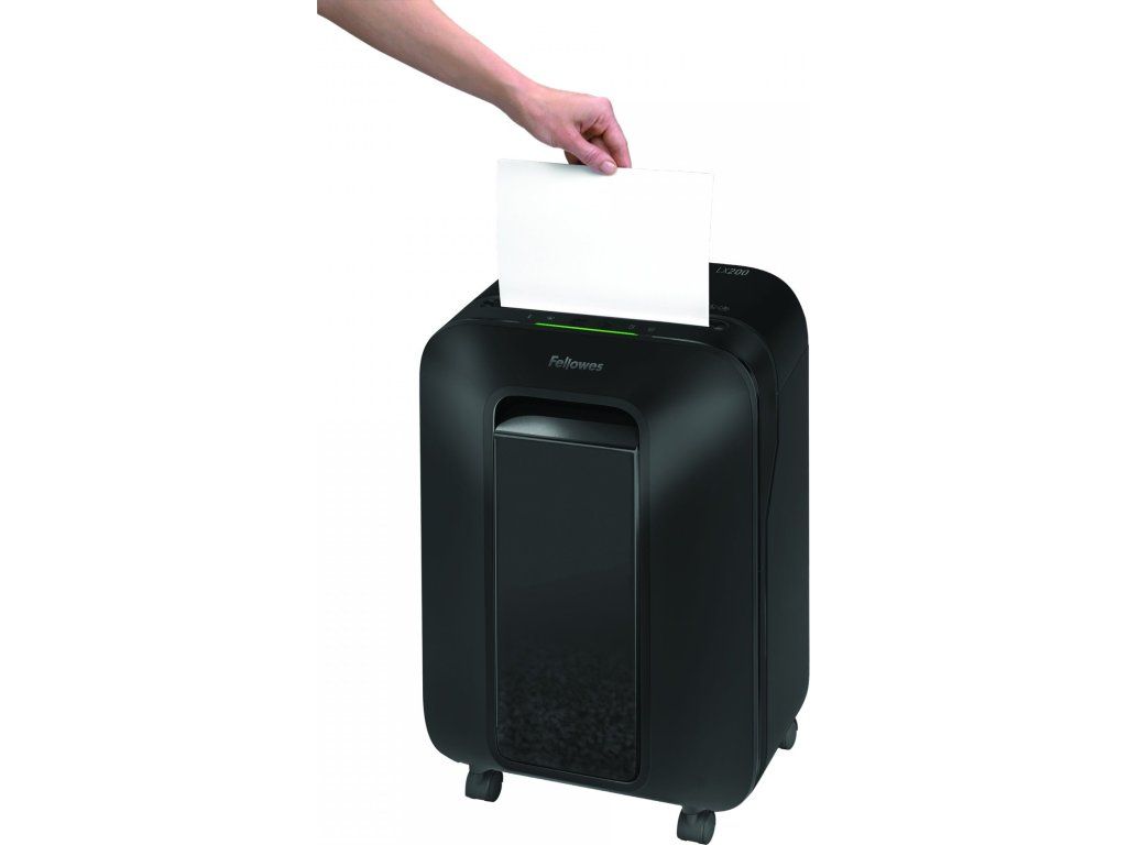 FELLOWES skartovač LX 200/ křížový řez 4x12mm/ objem koše 22 l/ stupeň utajení P-4 (důvěrné)/ černý