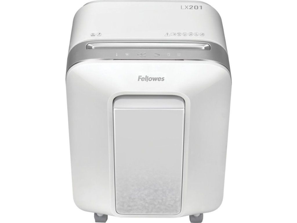 Fellowes LX 201Skartovačka s křížovým řezem. Dokáže pojmout až 12 listů papíru A4 najednou. Poradí si také s ničením platebních karet, malých sponek a svorek v dokumentech. Technologie SafeSense automaticky zastaví skartovací stroj při dotyku rukou v oblasti vstupního otvoru. Díky funkci Sleep Mode se zařízení po 2 minutách nečinnosti automaticky vypne. Výsuvný přední koš s velkým průzorem umožňuje vizuálně kontrolovat míru zaplnění.