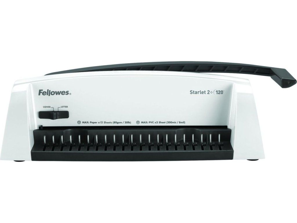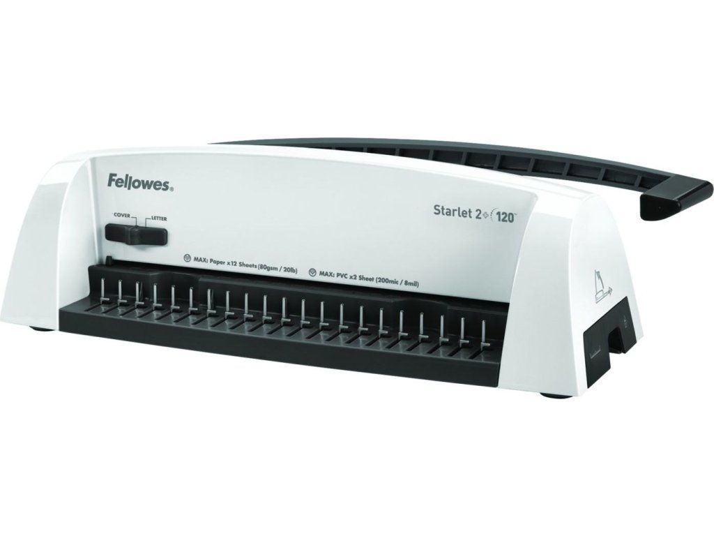 Základní model nové designové řady vázacích strojů Fellowes pro příležitostnou vazbu. Děrovací kapacita až 12 listů 80 g papíru. Kapacita vazby až 120 listů (do průměru hřbetu 16 mm). Vazač má dvě přednastavené pozice – pro děrování formátu A4 a A5.