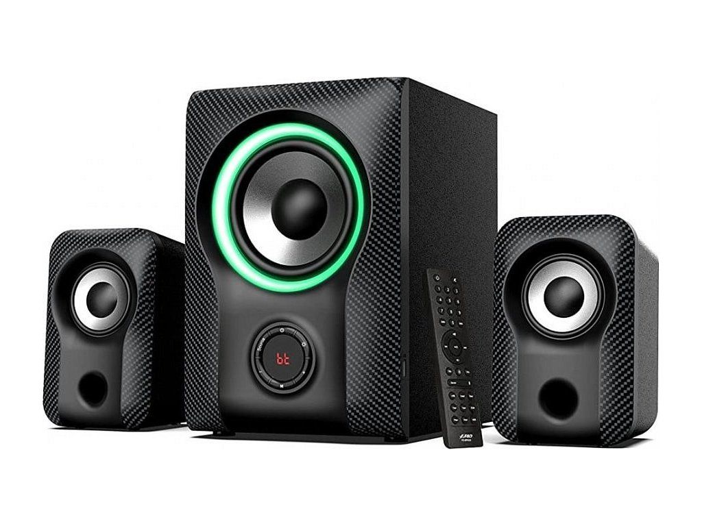 Stylové 2.1 reproduktory s celkovým výkonem 60 W. Na čelním panelu subwooferu se nachází stavový LCD displej a LED podsvícení, které ozvláštní váš poslech. Hudbu lze přehrávat i přímo z USB médií díky přítomnosti USB portu. Bezdrátový přenos je možný skrze Bluetooth. Uživatelský komfort podtrhne dálkové ovládání, které se nachází v balení.