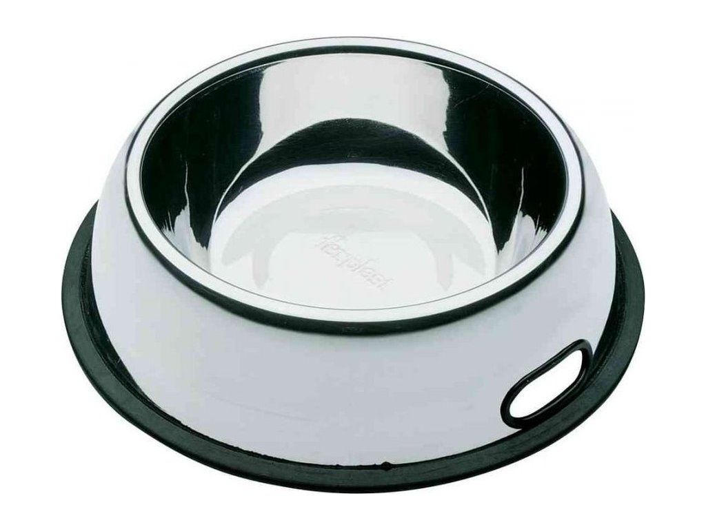 Pevná a odolná nerezová miska s protiskluzovou gumou a madlem ke snadnému zvedání misky. Miska je vhodná jak na vodu tak na jakékoliv psí krmivo. Objem 2,5l, průměr 33,5cm. Klasická miska, která se snadno používá a udržuje, nesmí chybět ve výbavě žádného psího mazlíčka.