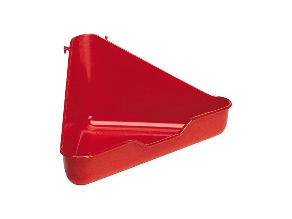 Praktická rohová toaleta je vyrobena z plastu, její údržba je snadná. Má chytré úchyty, díky kterým se zachytí na stěnách klece a necestuje po podlaze.