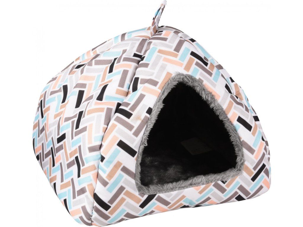 Měkký úkryt ve tvaru iglú pro hlodavce s očkem na zavěšení. Textilní pelíšek je celý vyroben z polyesteru. Vnitřní polstrování je z pěnové gumy pro pohodlí vašeho domácího mazlíčka. Z venku je iglú odolný vůči stříkající vodě. Výrobek perte v ruce, nežehlete a nesušte v sušičce.