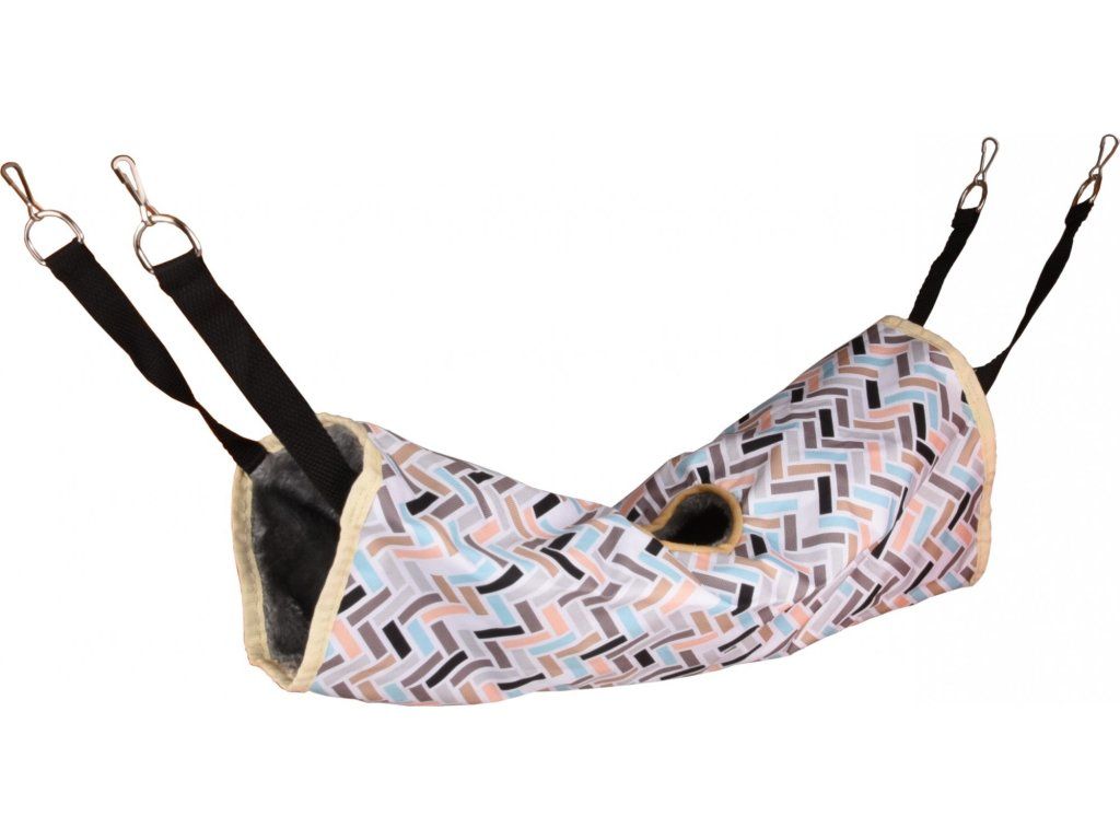 Pohodlné odpočívadlo pro zavěšení v kleci pro potkana, křečka, činčilu či fretku poskytne příjemné místo k odpočinku a spánku. Odpočívadlo je vyrobeno z nylonu, polyesteru a vnitřek má beránčí vzhled. Závěsné odpočívadlo lze lehce vyprat, a tak je snadné jej udržovat v čistotě.