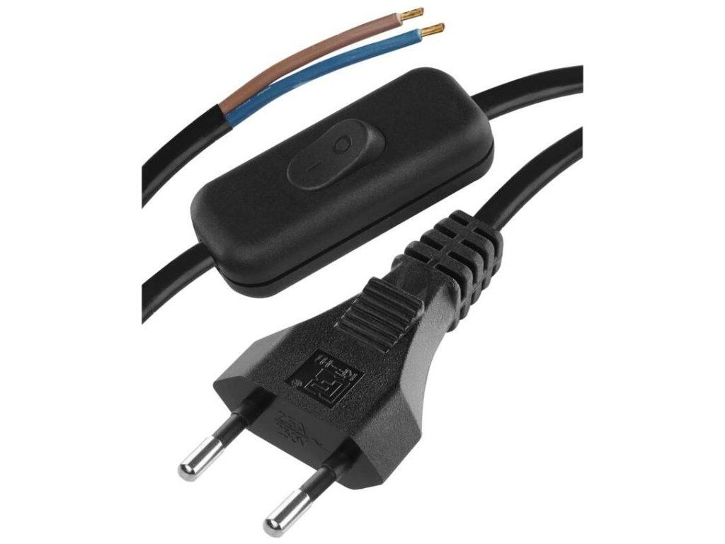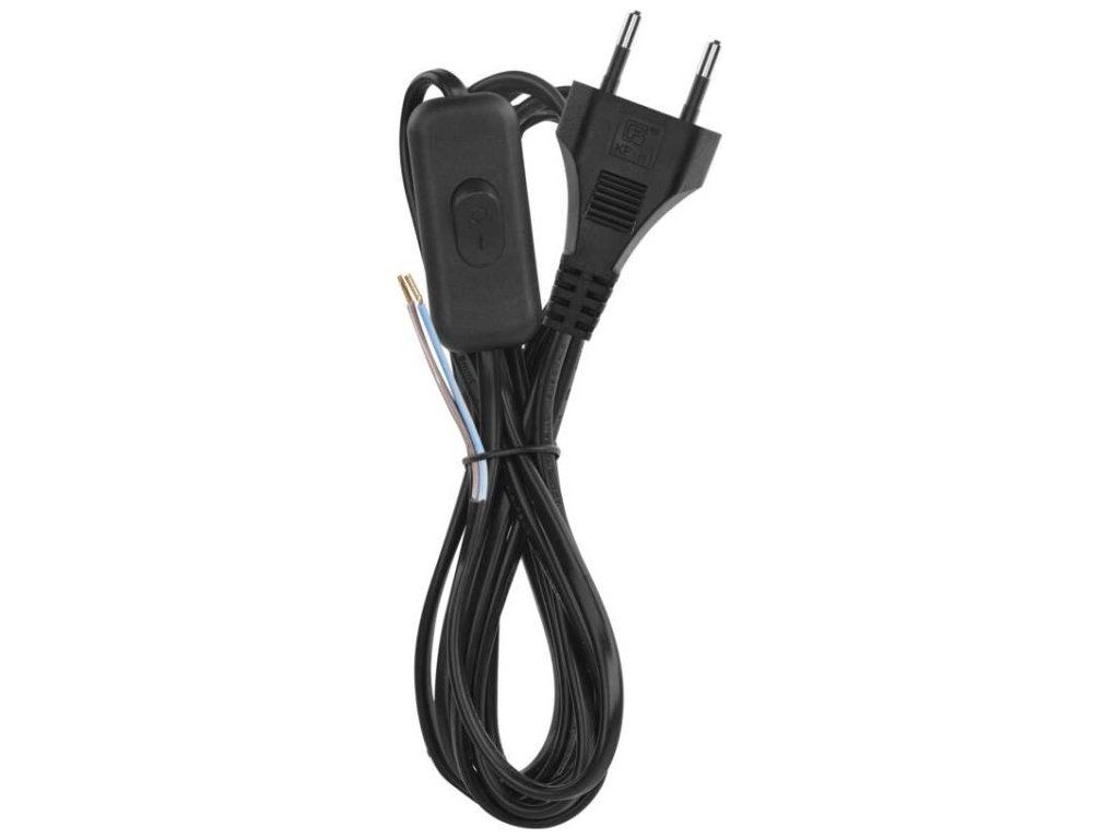 Flexo šňůra PVC 2× 0,75mm2 s vypínačem, 2m, černá