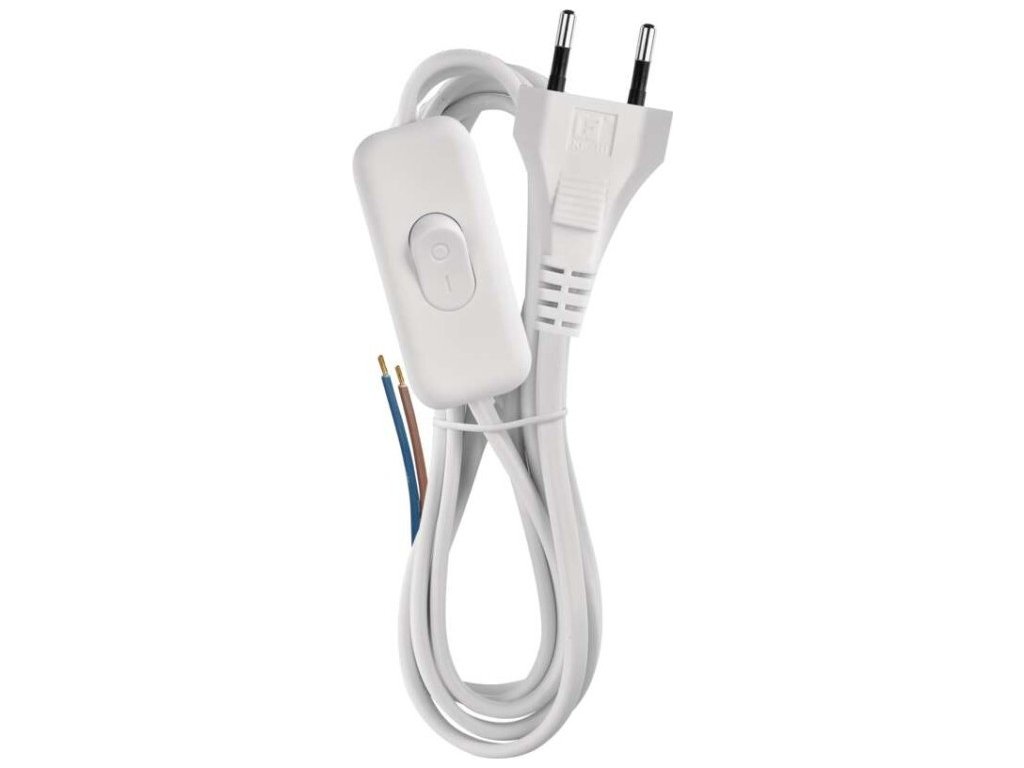 Flexo šňůra PVC 2× 0,75mm2 s vypínačem, 3m, bílá