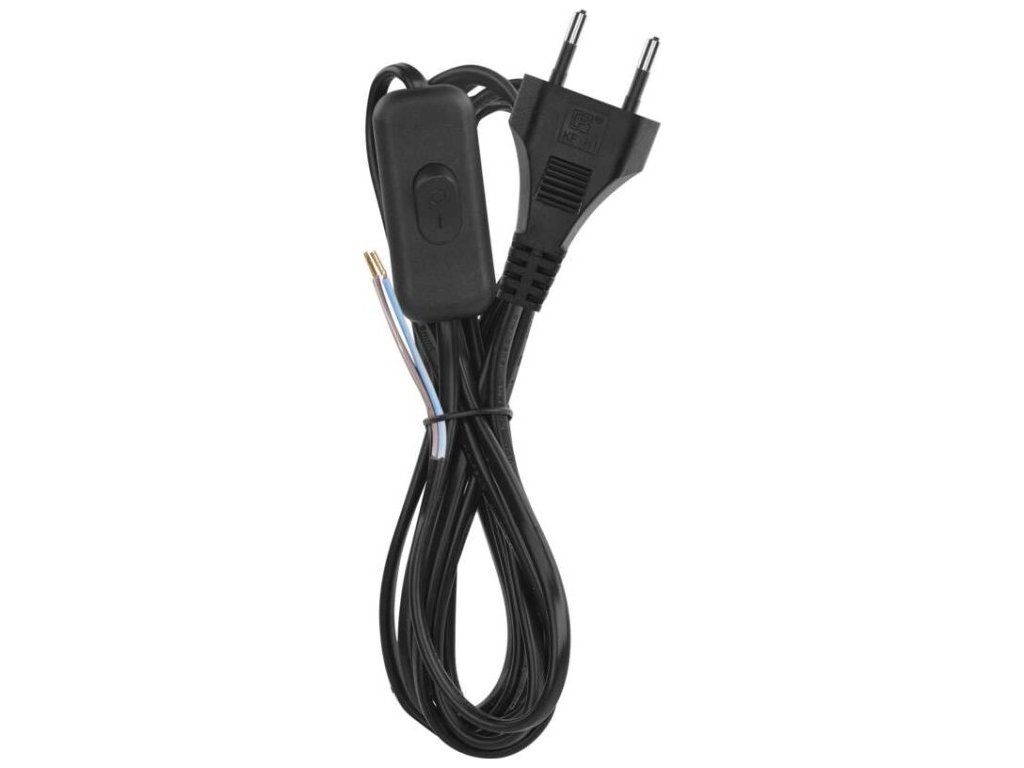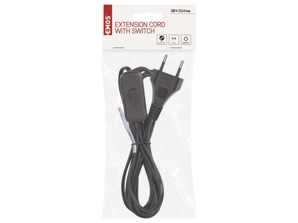 Flexo šňůra PVC 2× 0,75mm2 s vypínačem, 3m, černá