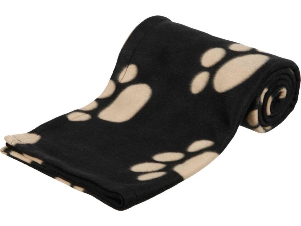 Flísová deka BARNEY 150x100cm - černá s béžovými tlapkami
