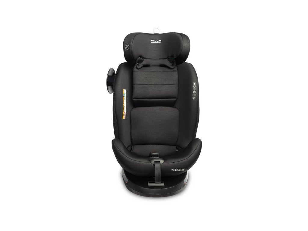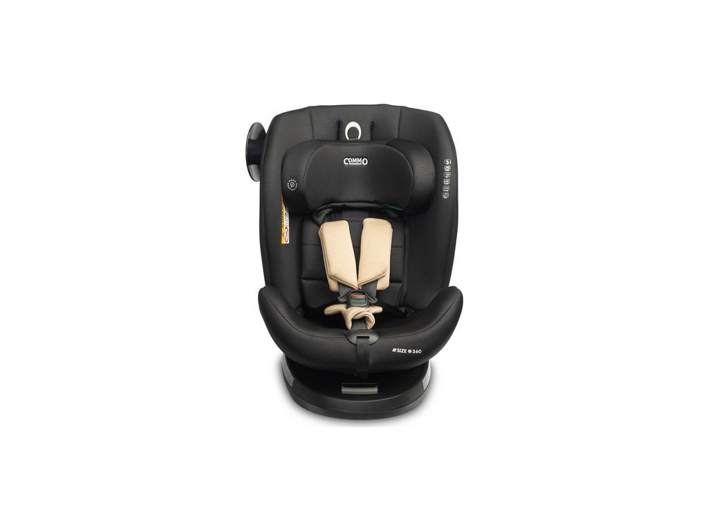 Caretero COMMO to nowoczesny fotelik samochodowy z wymagającą homologacją i-Size. Fotel jest przeznaczony dla dzieci od pierwszych miesięcy życia (od 40 cm) aż do momentu, w którym fotelik nie jest już wymagany, czyli osiągnięcia 150 cm wzrostu. Montaż w samochodzie jest bardzo łatwy i szybki dzięki zaczepom ISOFIX oraz pasowi TopTether z dodatkową klamrą z sygnalizacją dźwiękową. Siedzisko z możliwością obrotu 360 stopni gwarantuje wygodę umieszczania dziecka w foteliku. Komfort najwyższej klasy jest zapewniany przez wygodną wkładkę z regulowanym zagłówkiem. Tapicerka została wykonana z wysokiej jakości tkaniny poliestrowej gwarantując dziecku wygodę jazdy. Dzięki wielostopniowej regulacji zagłówka fotelik może być idealnie dopasowany do wzrostu dziecka, zapewniając prawidłowe podparcie okolic szyi i głowy. Commo posiada 5 stopni pochylenia zarówno w pozycji przodem, jak i tyłem do kierunku jazdy. Klamra 5-punktowych pasów fotelika została wyposażona w sygnalizator dźwiękowy, który zacznie piszczeć w momencie ich rozpięcia. Dodatkowym atutem jest boczna nakładka SIP (Side Impact Protection), która umieszczona na bocznej ściance fotelika gwarantuje zwiększone bezpieczeństwo w przypadku kolizji drogowej.