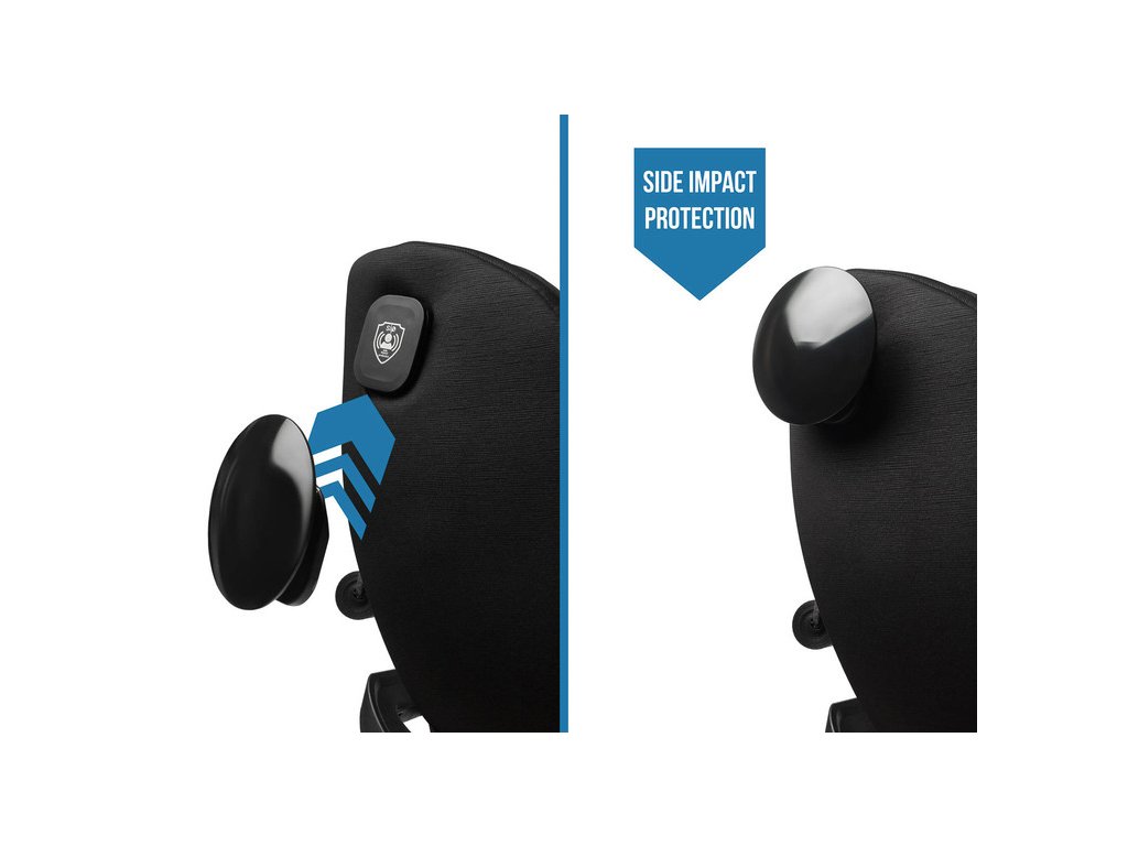 • instalacja tyłem (do 105 cm wzrostu – ISOFIX + TopTether) lub przodem do kierunku jazdy (od 76 do 105 cm wzrostu – ISOFIX + TopTether; od 100 do 150 – ISOFIX + 3-punktowe pasy samochodowe)
