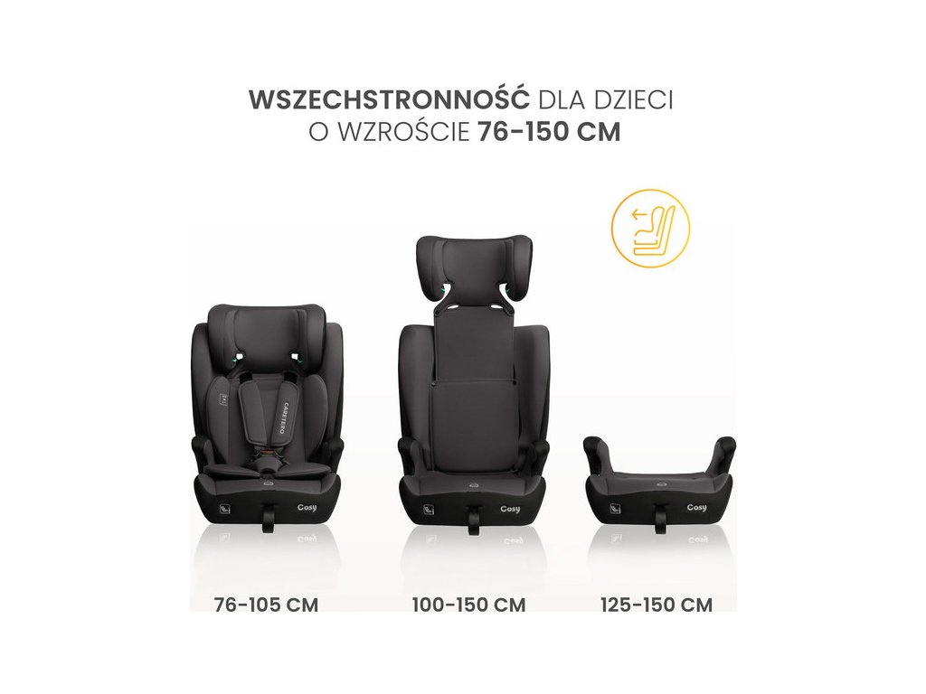 Nasz wielofunkcyjny fotelik 3 w 1 to idealne rozwiązanie dla rodziców szukających bezpiecznego i komfortowego fotelika, który rośnie razem z dzieckiem. Przeznaczony dla maluchów o wzroście od 76 do 150 cm, zapewnia wygodę na każdym etapie rozwoju, łącząc w sobie funkcje fotelika dla niemowlaka, przestronnego fotelika dla przedszkolaka oraz podkładki typu booster dla starszego dziecka.