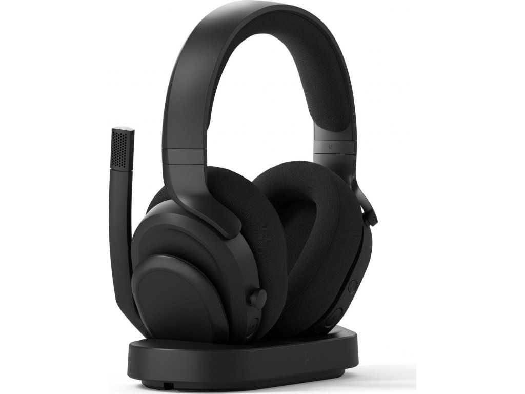 Obsah balení: Sluchátka, docking station, USB-A dongle, USB-C na USB-A kabel (1,5m), odnímatelný mikrofon, manuál