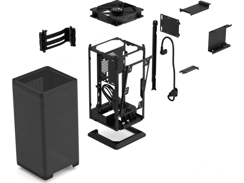 * krabice s příslušenstvím: 10x upevňovací šroub 6-32 (4 ks pro základní desku, 4 ks pro napájení, 2 ks navíc); 8x upevňovací šroub M3 (8 ks pro SSD); 4x 3,5” hnací šroub; 2x Thumbscrew; 6x páska na kabely; 8x stahovací páska; 1x 2,5” boční držák; 1x 2,5” horní držák