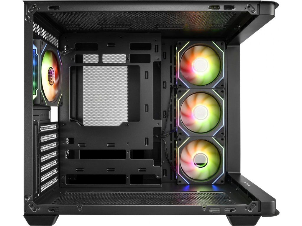 Boční strana: 3× 120mm reverzní ventilátor Daisy-Chain ARGB s PWM regulací