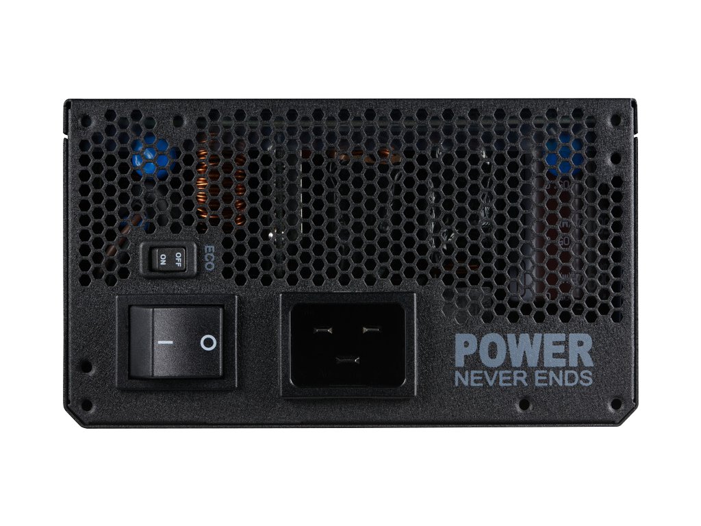 Vypínač „Eco Switch“ umožňuje zdroji pracovat tišeji a s nižší spotřebou energie. Pokud je zatížení zdroje menší než 40 %, zdroj přejde do tichého módu a ventilátor se vypne.