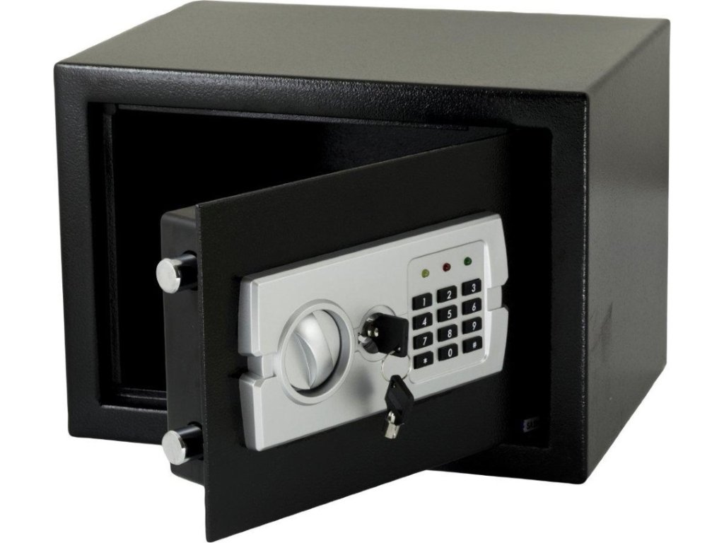 G21 GA-25EDigitální trezor G21 uchová vaše peníze, šperky, cestovní pasy, fotoaparáty a další cennosti v naprostém bezpečí. Je možné zazdít trezor do zdi, přichytit ho k podlaze, díky 4 otvorům na spodní straně, nebo jej nechat volně stát. Na zadní stěně trezoru se rovněž nachází 4 otvory, díky kterým můžete trezor také přichytit na zeď. Tyto domácí trezory jsou v moderní černé barvě a mají kvalitní kovové provedení. Elektronický zámek je na PIN-kód, který vám umožní velmi snadnou obsluhu. Určete si 3-8 číselný kód a mějte všechny cennosti bezpečně pod zámkem. V případě nouze je k trezoru dodáván i klíč, kterým je možné trezor také otevřít.