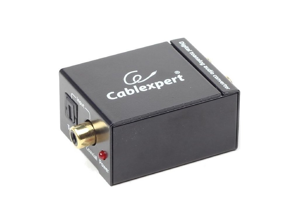 Umožnuje připojit zařízení s digitálním audio výstupem (coax nebo toslink) k analogovým zesilovačům nebo reproduktorům. Výstupním zdrojem signálu je 2x RCA cinch stereo. 5V nabíjecí adaptér je součástí balení.