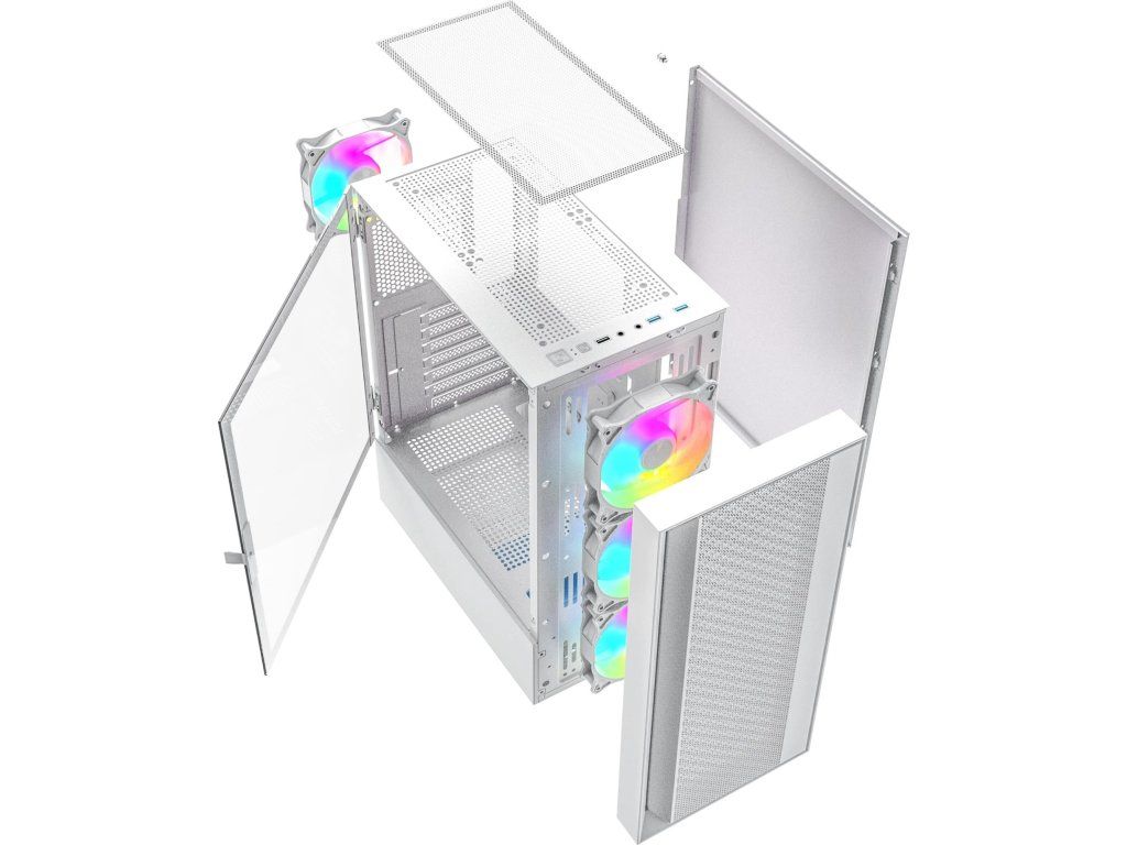 Gembird Fornax 4000 ARGB/Midi Tower/Transpar./Bílá