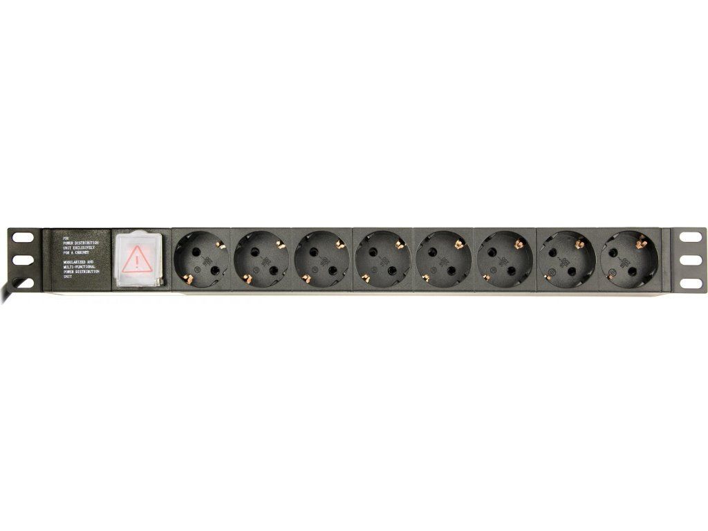 Power distribution unit (PDU), 8 Schuko sockets, 1U, 10A, C14 plug 3 m cable