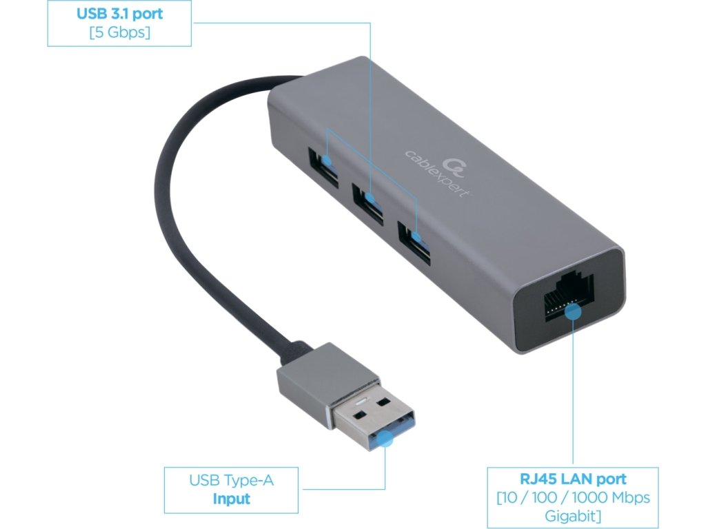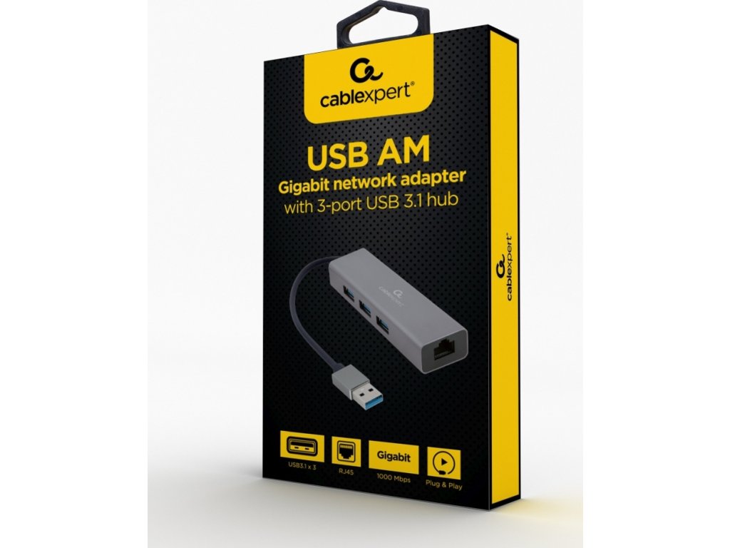 USB síťového adaptéru AM Gigabit s 3-portový USB 3.0 hub