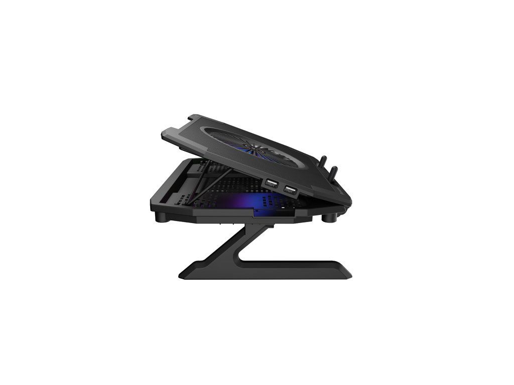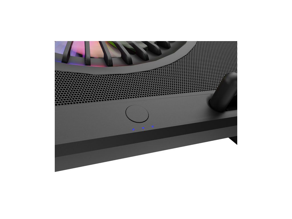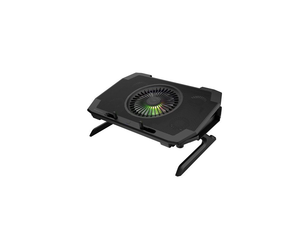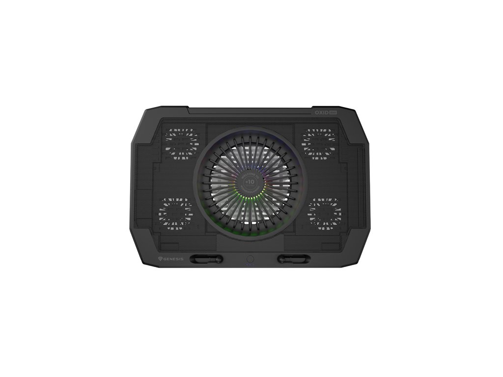 Genesis OXID 850 je chladicí stojan určený pro notebooky s úhlopříčkou až 17,3", který pomáhá udržovat správnou teplotu zařízení během intenzivního hraní her. Jeho sklopné nožičky zvýší ergonomii práce a efektní RGB osvětlení hlavního ventilátoru bude dokonalým doplňkem každé herní stanice.