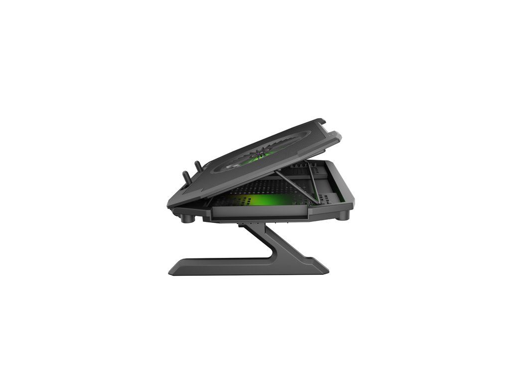 Stojan OXID 850 je vybaven účinným a bezpečným chladicím systémem založeným na čtyřech malých ventilátorech, které odvádějí teplo zpod notebooku, a jednom hlavním ventilátoru, který přivádí studený vzduch do notebooku. Správné umístění ventilátorů zajišťuje mimořádně účinné chlazení a třístupňová regulace rychlosti jejich otáčení účinně sníží teplotu notebooku i během nejzuřivějších bitev.