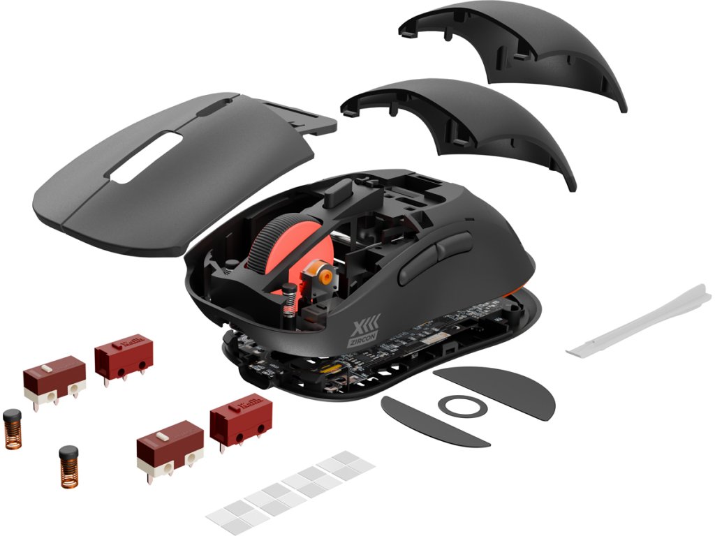Sami se rozhodněte, jak chcete, aby váš klon myši GENESIS Zircon XIII fungoval. Díky možnostem přizpůsobení můžete snadno upravit sílu potřebnou k aktivaci tlačítek (speciální pružiny), jejich zdvih (speciální distanční podložky) nebo vyměnit mikrospínače hlavních tlačítek (v sadě najdete až 2 další typy, včetně spínačů Huano Silent ). To vše bez technických dovedností nebo pájení, pouze s použitím jednoho přiloženého nástroje.