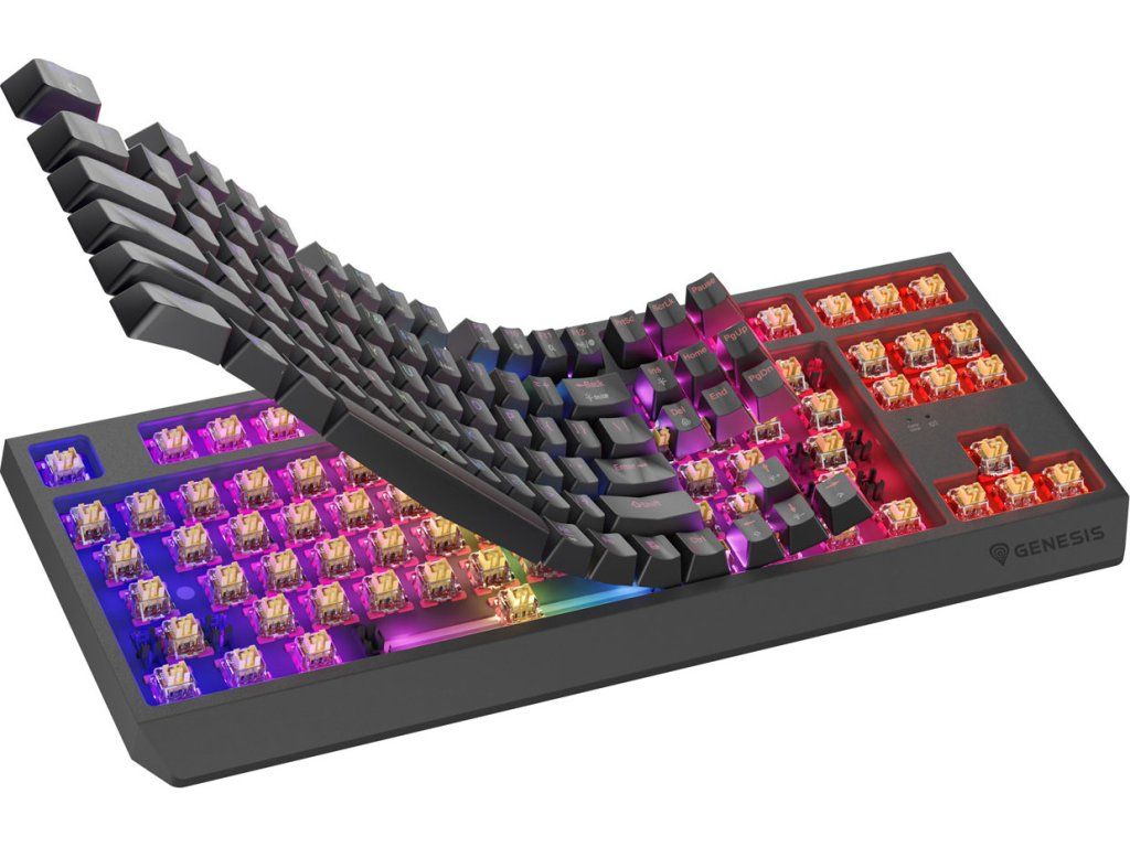 Klávesnice GENESIS Thor 230 TKL Wireless je vybavena různými typy spínačů. Každý z nich se vyznačuje vysokou přesností, aktivací bez ohledu na místo stisknutí klávesy a vysokou dynamikou. Víme však, že jako hráč můžete mít své vlastní preference. Proto jsme v GENESIS Thor 230 TKL Wireless implementovali hot - swap - techniku, která vám umožní vyměnit jakýkoli třípinový mechanismus za mikrospínač od společností jako Outemu, Akko, KTT. Jednoduše vytáhněte nainstalovaný mechanismus a zapojte nový. Díky systému Hot Swap také nemusíte kupovat novou klávesnici, když jeden spínač selže. Můžete jej vyměnit během několika sekund.