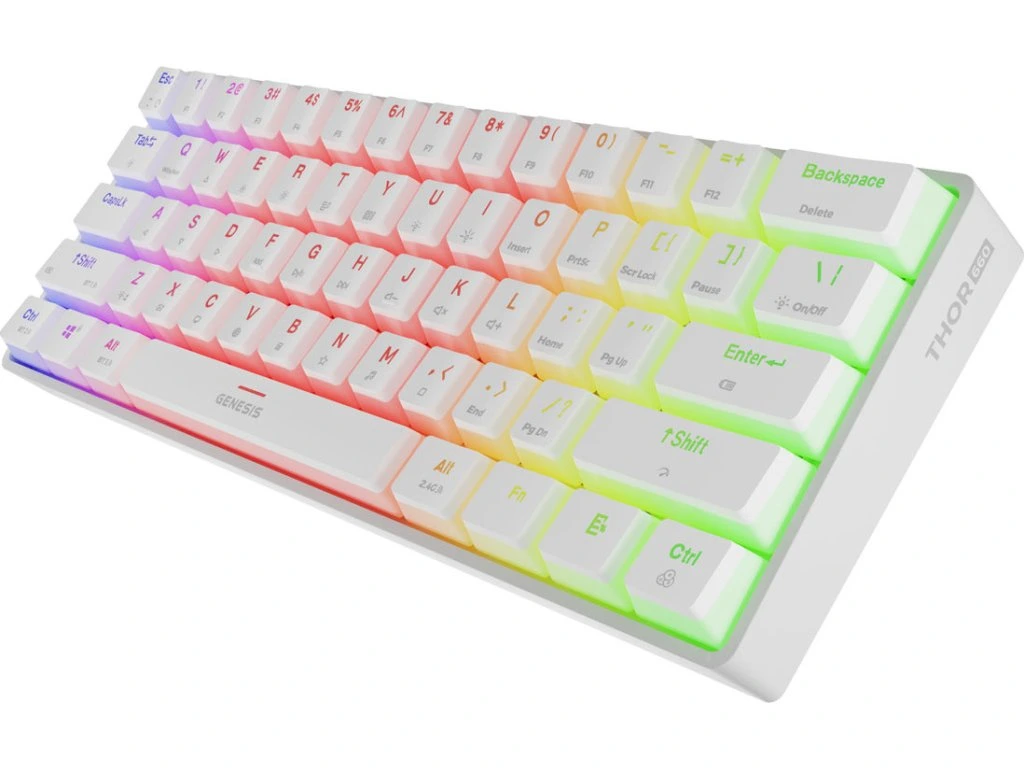 Při navrhování modelu GENESIS Thor 660 G2 jsme věděli, že kvalita konstrukce je víc než jen použití kvalitních materiálů. Proto jsme GENESIS Thor 660 G2 vybavili řadou funkcí, které pozitivně ovlivní váš herní zážitek. Počínaje neplovoucí konstrukcí, která snižuje chrastění kláves, přes mazané kvalitní stabilizátory, díky nimž budou klávesy pracovat nejen hladčeji, ale také tišeji, až po odolné krytky Pudding PBT , které propouštějí mnohem více světla. Nic na klávesách GENESIS Thor 660 G2 není náhodné.