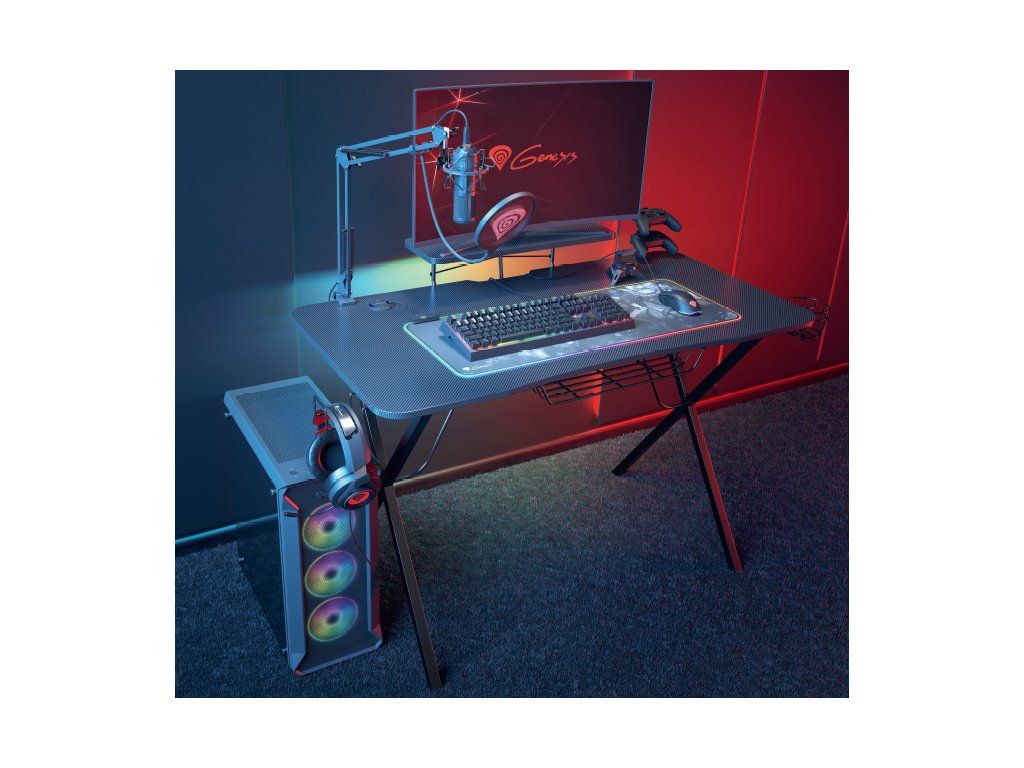 Genesis Holm 300 RGB je jedinečný stůl určený pro hráče her, který je vybaven množstvím dodatečných funkcí a praktických držáků, díky čemuž budete mít vaše příslušenství vždy po ruce. Navíc stůl obsahuje RGB podsvícení, které dává najevo, že se jedná o koutek skutečného hráče!