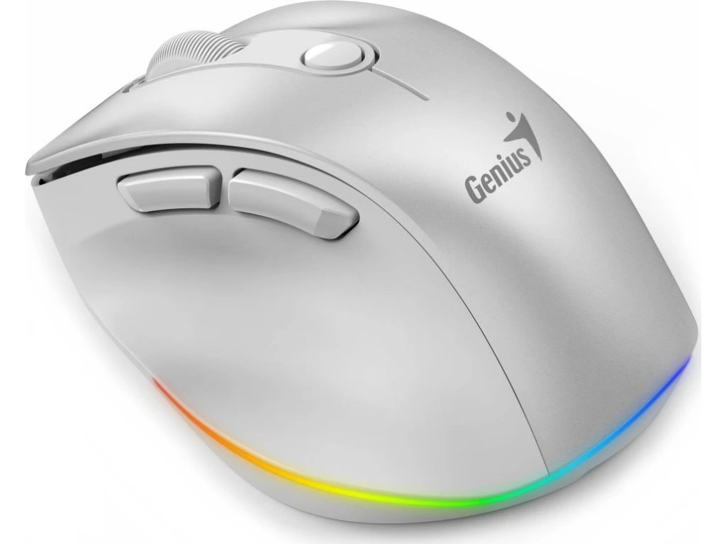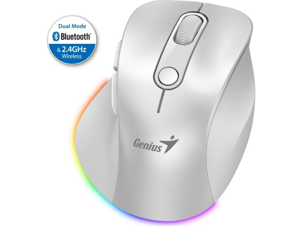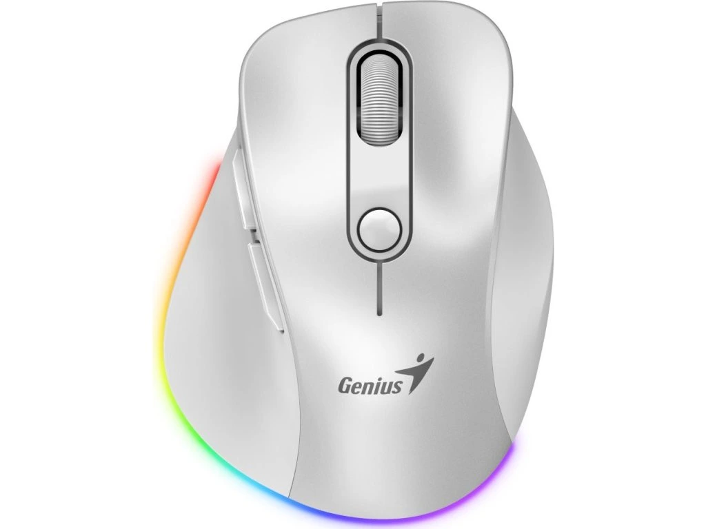 GENIUS Ergo 9000S Pro Pearl White/ duální Bluetooth + 2,4GHz/ 2400 dpi/ bezdrátová/ 6tlačítková/ dobíjecí/ RGB/ bílá