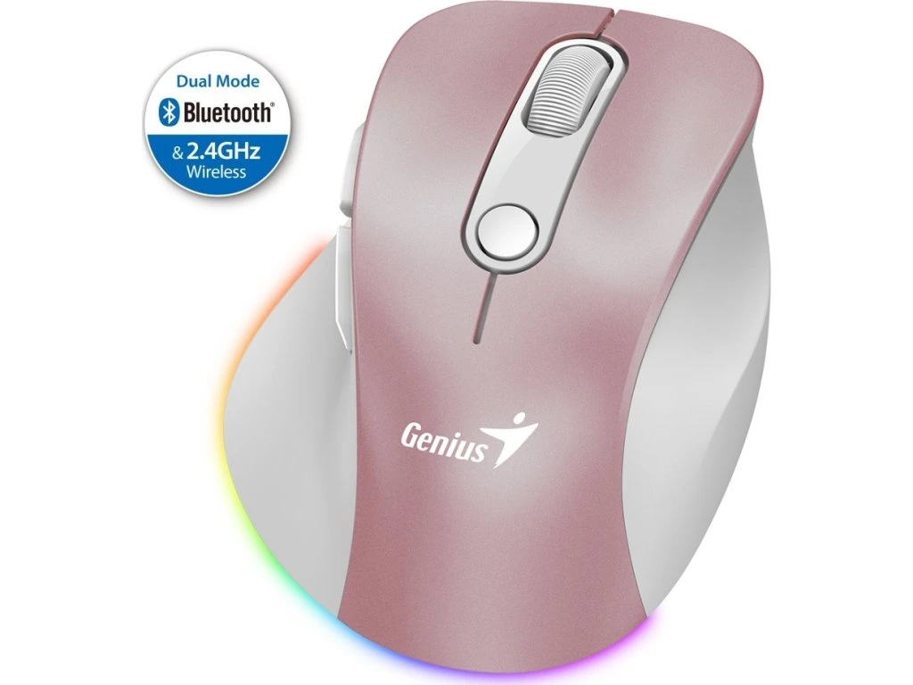 GENIUS Ergo 9000S Pro Pink/ duální Bluetooth + 2,4GHz/ 2400 dpi/ bezdrátová/ 6tlačítková/ dobíjecí/ RGB/ růžová