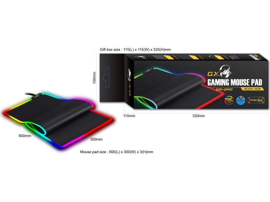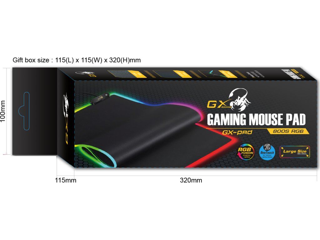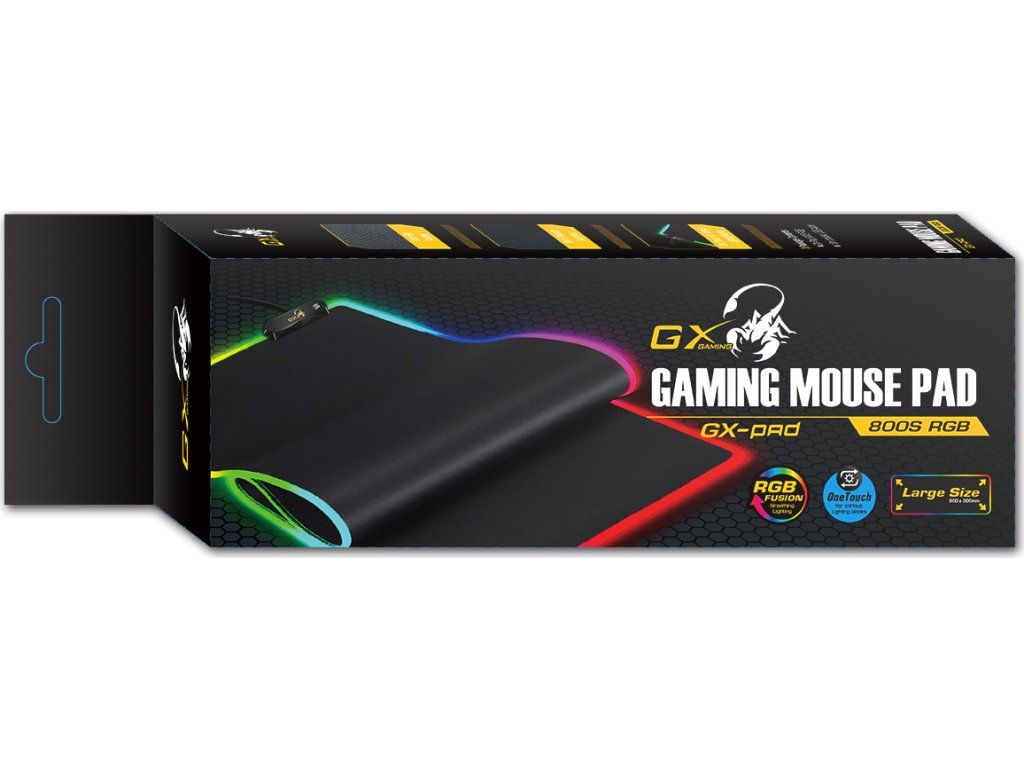 Genius GX GAMING GX-Pad 800S RGBDesignová herní podložka pod myš s hladkým textilním povrchem. Podložku lze snadno srolovat a pohodlně přenášet. Nastavitelné RGB LED podsvícení ozvláštní a doplní design celé vaší herní sestavy. Díky dotykovému ovladači si můžete jednoduše vybrat ze 3 dynamických a 7 statických režimů podsvícení.