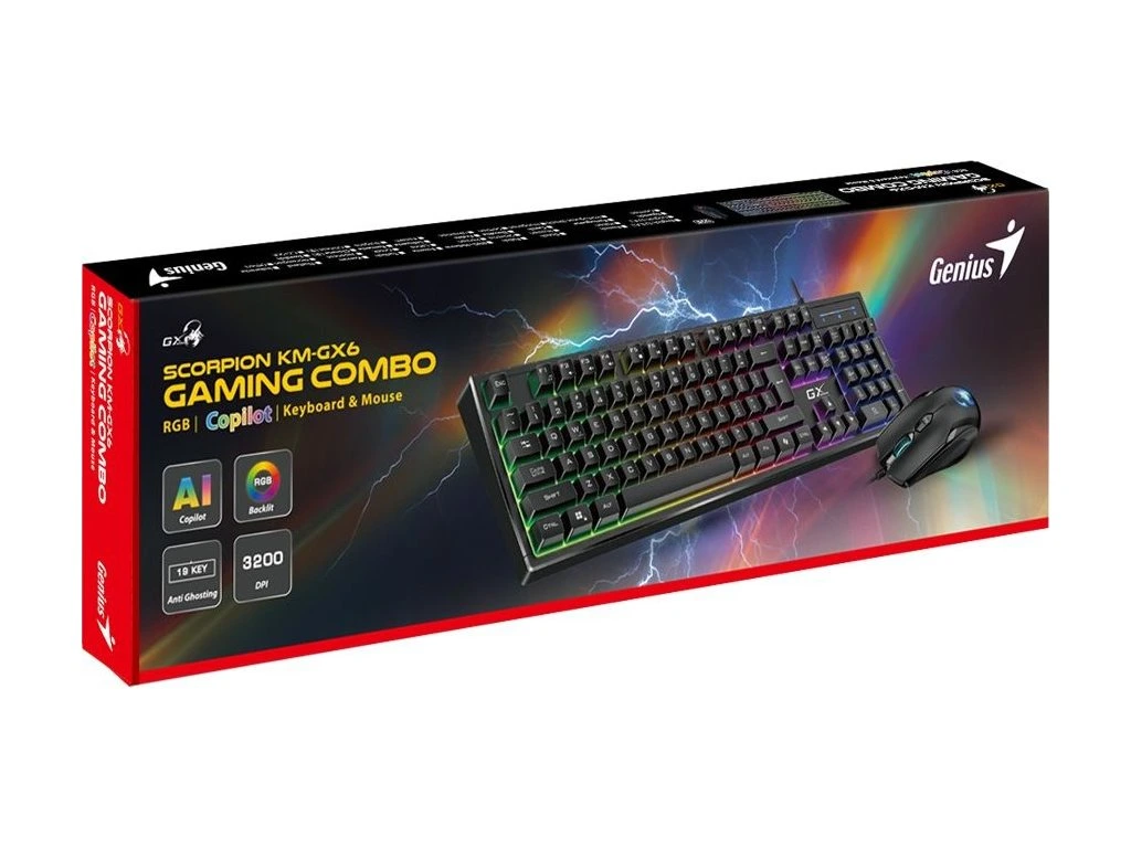 GENIUS GX GAMING Scorpion KM-GX6/ drátový set klávesnice s myší/ RGB podsvícení/ Copilot/ USB/ černá/ CZ+SK layout