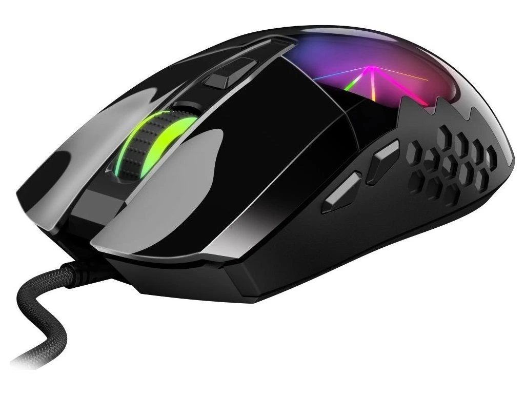 Herní myš disponující 6 tlačítky a vysoce přesným optickým senzorem s nastavitelným rozlišením v rozmezí 800 až 7200 DPI. Ergonomický herní design myši doplňuje RGB podsvícení s 3D efektem. Pro připojení k počítači slouží 1,8 m dlouhý opletený kabel zakončený USB konektorem.