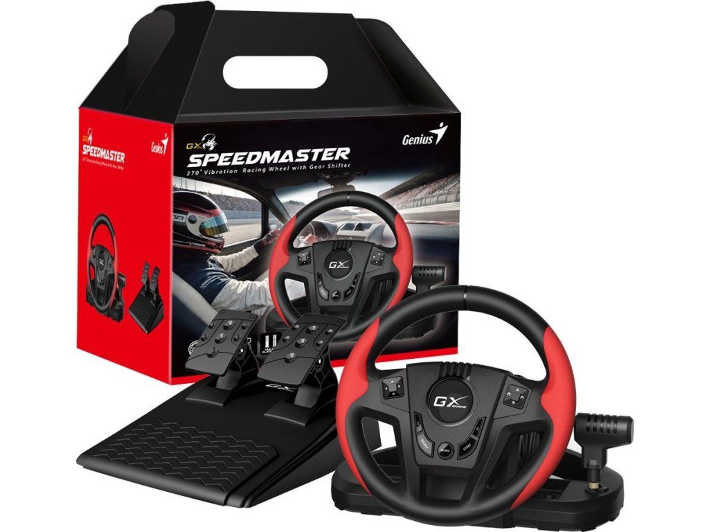 Genius GX Gaming SpeedMaster představuje komplexní set pro realistické ovládání závodních her. Skládá se z volantu, pedálů a řadicí páky, takže virtuální jízdu si vychutnáte se vším všudy. Volant nabízí až 270° úhel otáčení, díky čemuž se přizpůsobí rozmanitým jízdním stylům a vozům – od osobních aut nebo kamionů až po sportovní a závodní vozy. Set Genius GX Gaming SpeedMaster je kompatibilní s PC a herními konzolemi PlayStation 3 a PS4, pro připojení slouží rozhraní USB, takže uvedení do provozu je rychlé a jednoduché. Dvojice vibračních motorů přenese nejrůznější nerovnosti nebo vyjetí z trati přímo do vašich rukou. Díky tomu je zážitek z jízdy ještě intenzivnější. Pro stabilní uchycení na stole slouží systém svorek.