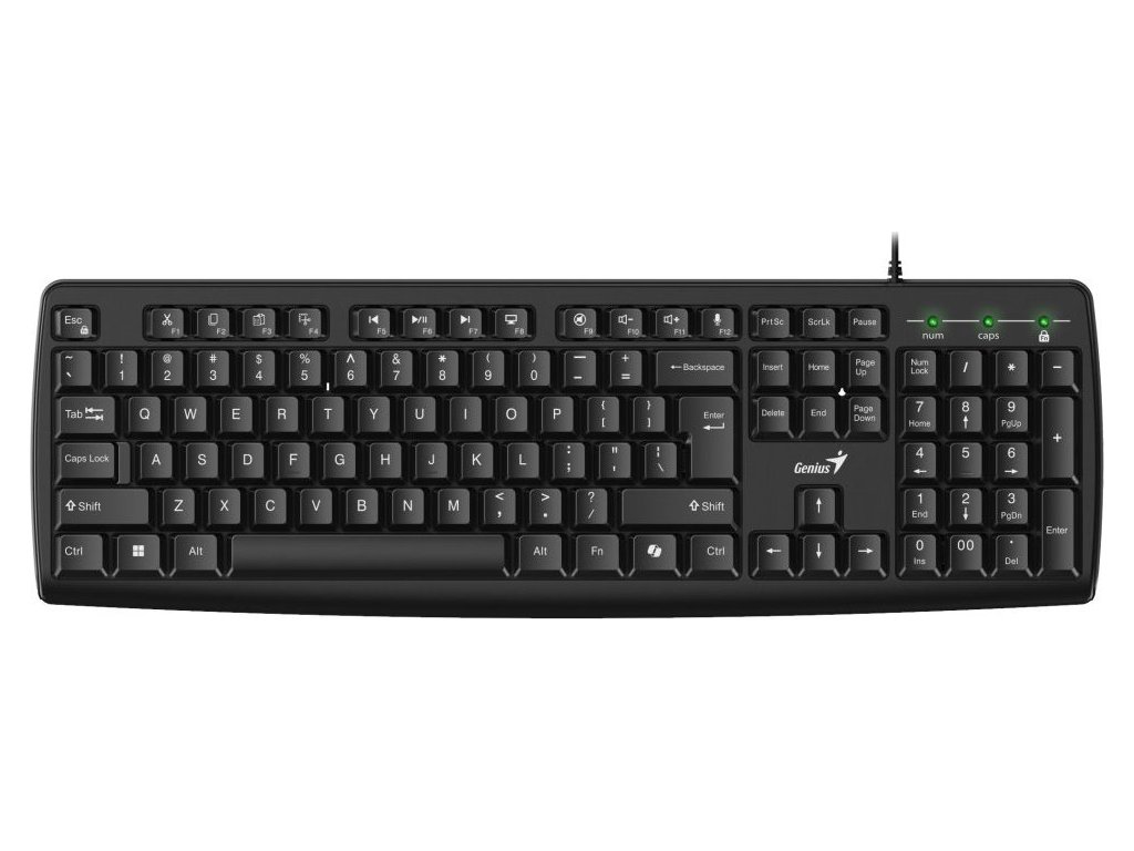 Drátová klávesnice Genius KB-123 s integrovanou opěrkou pro zápěstí je vhodná pro každodenní psaní a efektivní používání u pracovního nebo domácího PC. Je tak vhodná do kanceláře, na home office, nebo třeba školní učebny. Její ergonomii, jednoduchost a praktičnost ocení všichni běžní uživatelé. Klávesnice Genius KB-123 obsahuje také numerický blok pro jednoduché zadávání čísel a dalších znaků. Nechybí ani multimediální klávesy pro ovládání přehrávání a hlasitosti.