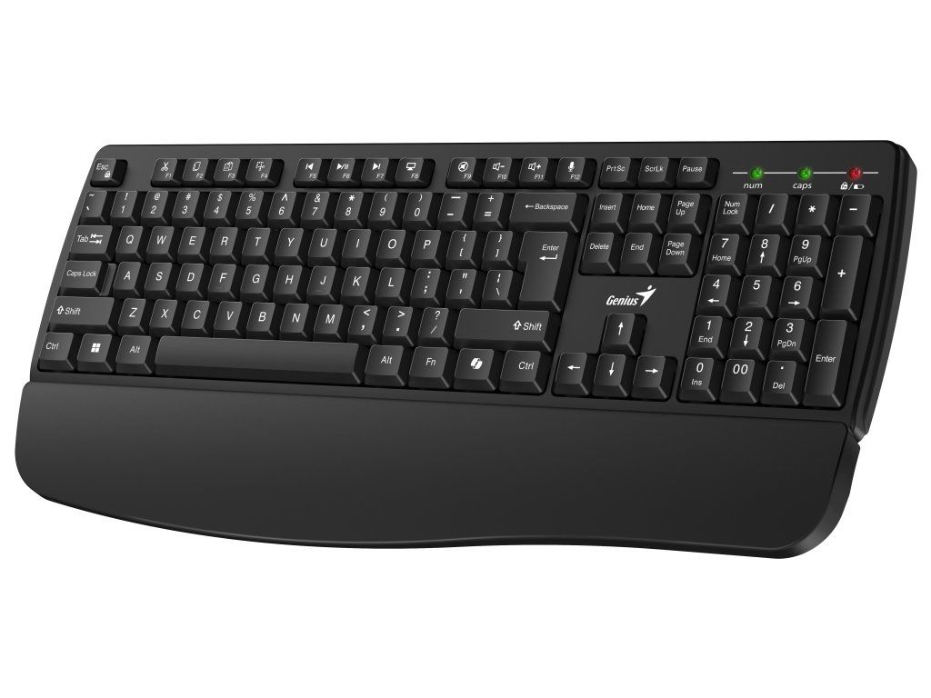 Genius KB-7123 je bezdrátová business klávesnice s integrovanou opěrkou zápěstí, která poskytuje stabilní oporu a umožňuje udržovat ruku v příjemné a uvolněné poloze při psaní. Díky tomu je ideální pro dlouhodobé a pohodlné psaní bez únavy.