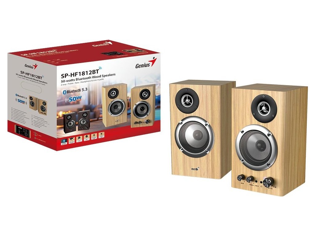 Výkonné dvoupásmové reproduktory Genius SP-HF1812, které mají styl a postarají se o plnohodnotné ozvučení v kanceláři i domácnosti. Jsou ideální pro pracovní i multimediální sestavy, hudební i filmové nadšence. Díky celkovému výkonu 50 W RMS si užijete kvalitní poslech bez kompromisů v každé běžné místnosti. Reproduktory Genius SP-HF1812 lze připojit bezdrátově pomocí technologie Bluetooth 5.3, ale nechybí ani standardní 3,5mm jack konektor, aby byl set kompatibilní nejenom s PC a notebooky, ale také smartphony, tablety nebo TV.