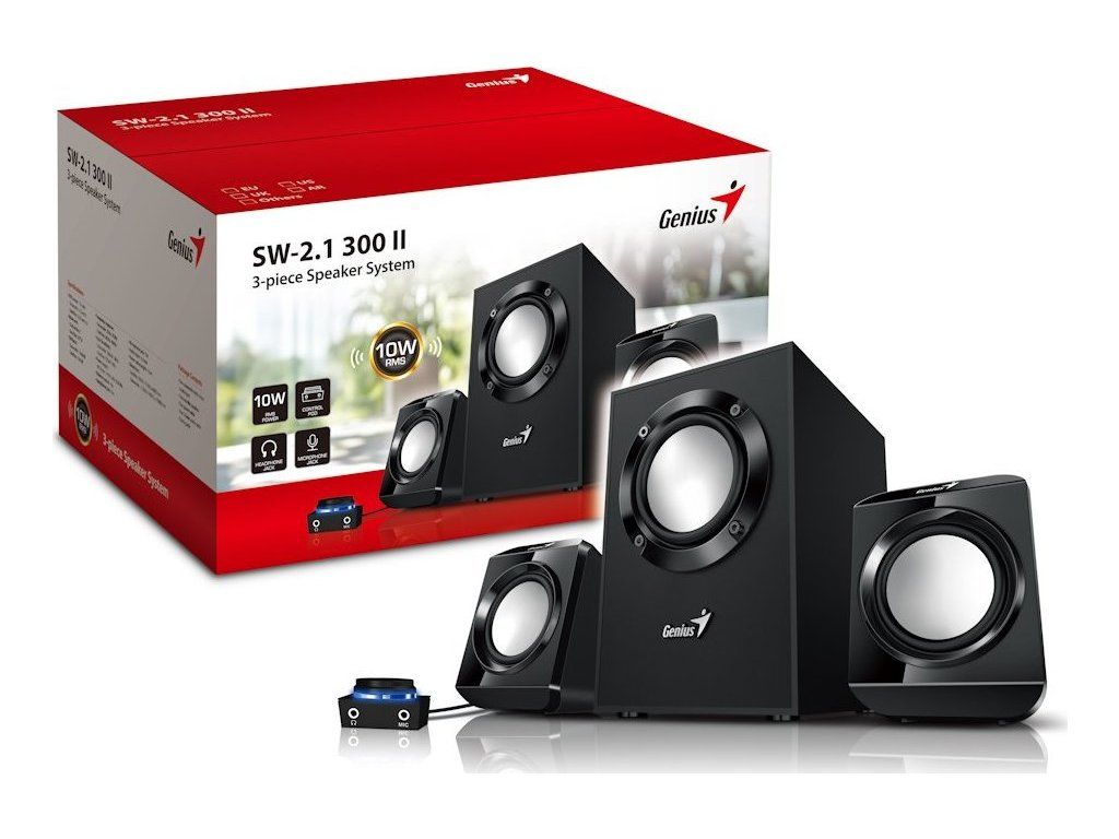 Systém reproduktorů Genius SW-2.1 300 Ver. II, který se postará o ozvučení filmů, videí, her a poslech hudby. Produkuje silný zvuk ocelkovém výkonu a podporuje intenzivní multimediální zážitky. Díky kompaktnímu provedení se snadno vměstná na pracovní plochu k počítači nebo notebooku.