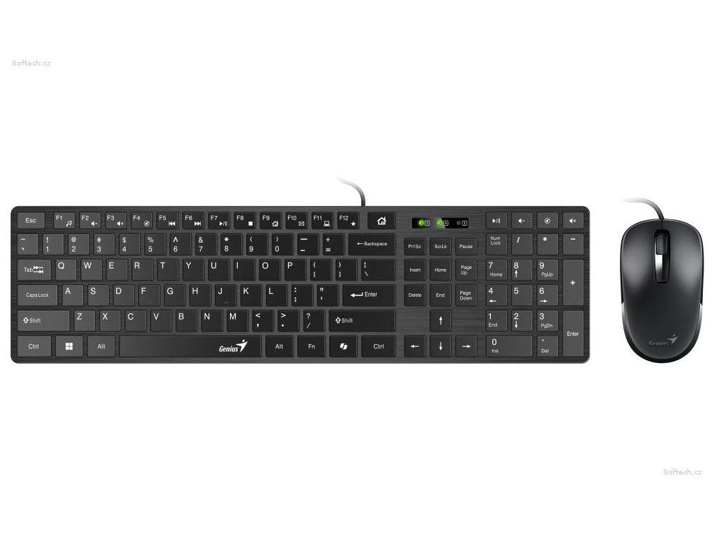 Genius SlimStar C126 představuje set klávesnice a myši, který je určen pro každodenní pracovní činnost na PC. Klávesnice nabízí numerický blok i multimediální klávesy pro rychlé a snadné zadávání číselných znaků, respektive základní ovládání přehrávaných multimédií. Pro připojení slouží standardní port USB. Myš Genius disponuje optickým senzorem s rozlišením 1200 dpi, který podporuje hladký a plynulý pohyb po pracovní ploše nebo podložce. Tradiční rozvržení tlačítek umožňuje jednoduché surfování po internetu, procházení dokumentů a ovládání aplikací. Mezi další přednosti patří rovněž podpora Microsoft Copilot. Tento nástroj umělé inteligence slouží například pro práci s texty, komunikaci, chatování, získávání informací pro rešerše a efektivní plnění pracovních nebo studijních úkolů.