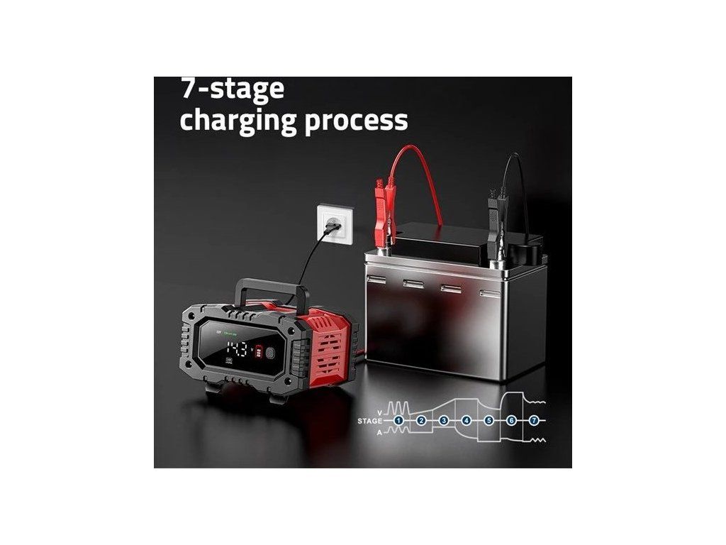 - Sedmistupňový automatický nabíjecí proces řízený procesorem pro efektivní nabíjení