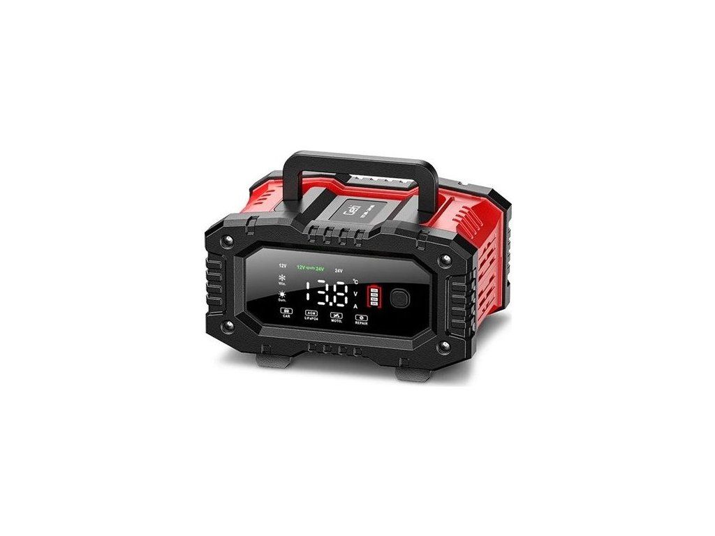 Velký přehledný LCD displej poskytuje kompletní přehled o stavu nabíjení, napětí, proudu a dalších důležitých parametrech. Intuitivní ovládací panel umožňuje snadnou volbu režimu nabíjení. Připojení k baterii je jednoduché díky 1,2 m dlouhému nabíjecímu kabelu s krokosvorkami.