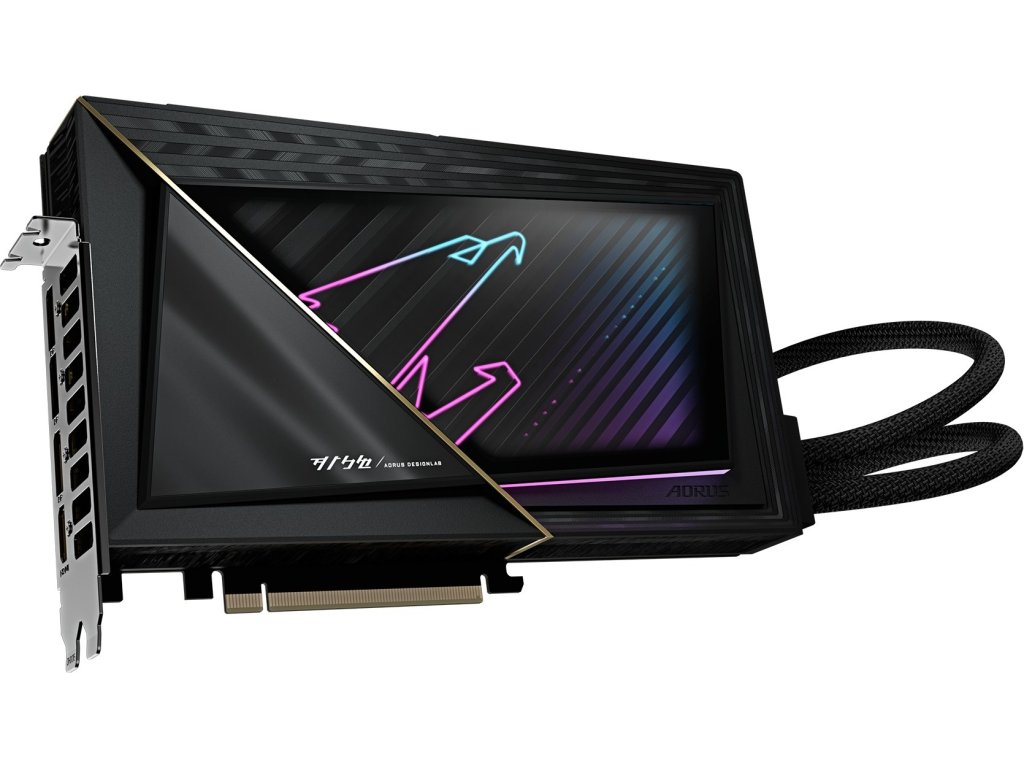 Karta vyniká elegantním designem se zlatým okrajem a vrstveným vizuálním efektem. RGB podsvícení využívá světlovodné vlastnosti akrylu pro rafinované osvětlení loga AORUS a okrajů nepravidelného designu.