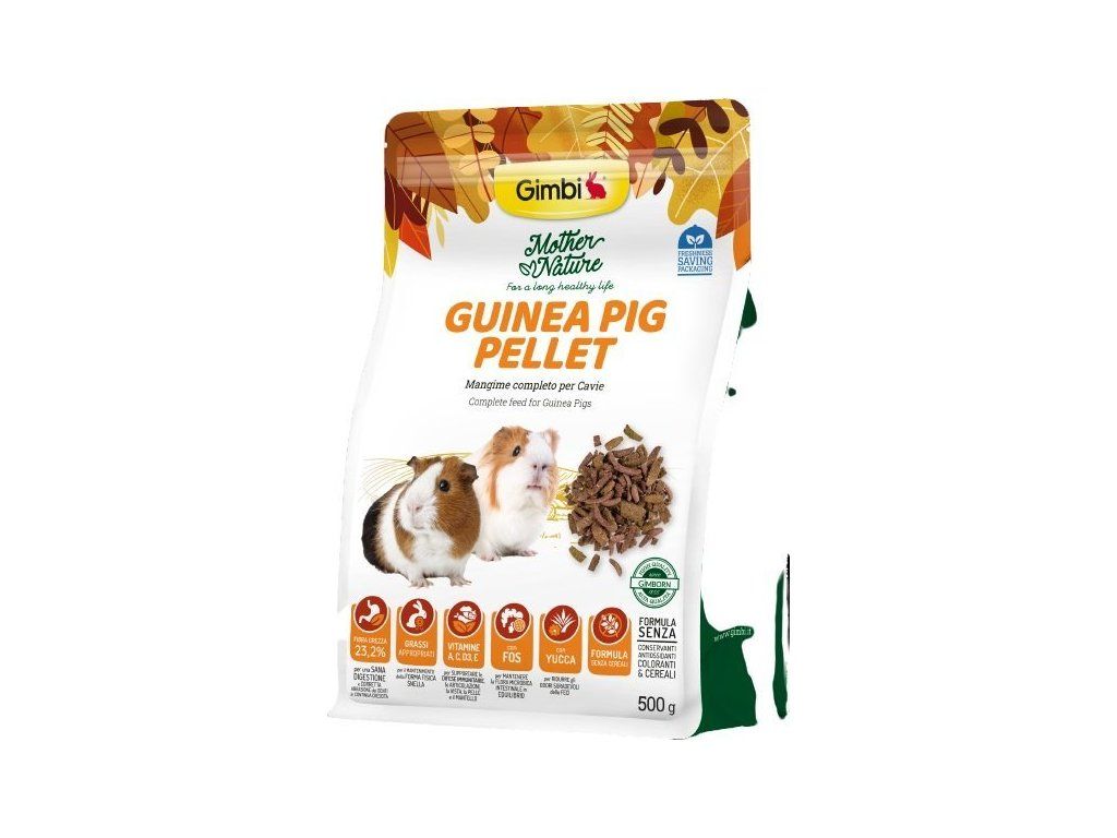 Vysoce kvalitní kompletní krmivo pro morčata v podobě sušených pelet. Krmivo neobsahuje obiloviny, má vysoký obsah vlákniny (FOS) pro správné zažívání, a široké spektrum vitamínů, zejména A, C, D3 a E. S přídavkem juky pro snížení zápachu exkrementů. Neobsahuje konzervanty. Klasické krmivo, které mají morčata ráda. Pro spokojený a zdravý život vašeho mazlíčka.