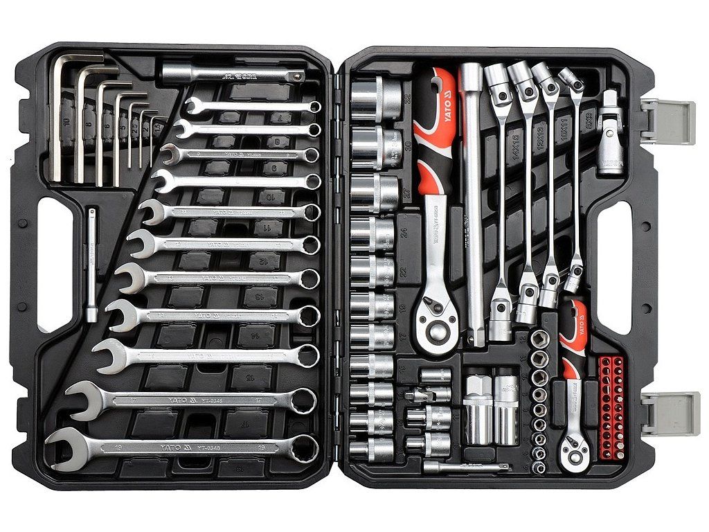 nástavce 1/2": 10; 11; 12; 13; 14; 15; 17; 19; 22; 24 (38 mm) nástavce 1/2": 27; 30; 32 (42 mm) nástavce 1/4": 4; 5; 6; 7; 8; 9; 10; 11; 12 (25 mm) prodlužovací nástavce 1/2": (127; 254 mm) prodlužovací nástavce 1/4": (76; 101,6 mm) kloubový nástavec 1/2" nástavce na svíčky: 16; 21 mm ráčny: 1/2" (255 mm); 1/4" (155 mm) redukce 1/4" F(držák bitů) redukce 1/4" M bity ploché: 3; 4; 5,5; 7 mm (25 mm) bity křížové: PH0; PH1; PH2; PH3 (25 mm) bity křížové: PZ1; PZ2; PZ3 (25 mm) bity Torx: T10; T15; T20; T25; T30 (25 mm) bity Imbus: 2; 3; 4; 5; 6 mm(25 mm) očkoploché klíče: 7; 8; 9; 10; 11; 12; 13; 14; 15; 17; 19 mm nástrčné kloubové klíče: 8x9; 10x11; 12x13; 14x15 mm imbusové klíče: 1,5; 2; 2,5; 5; 6; 8; 10 mmDoplňkové parametry