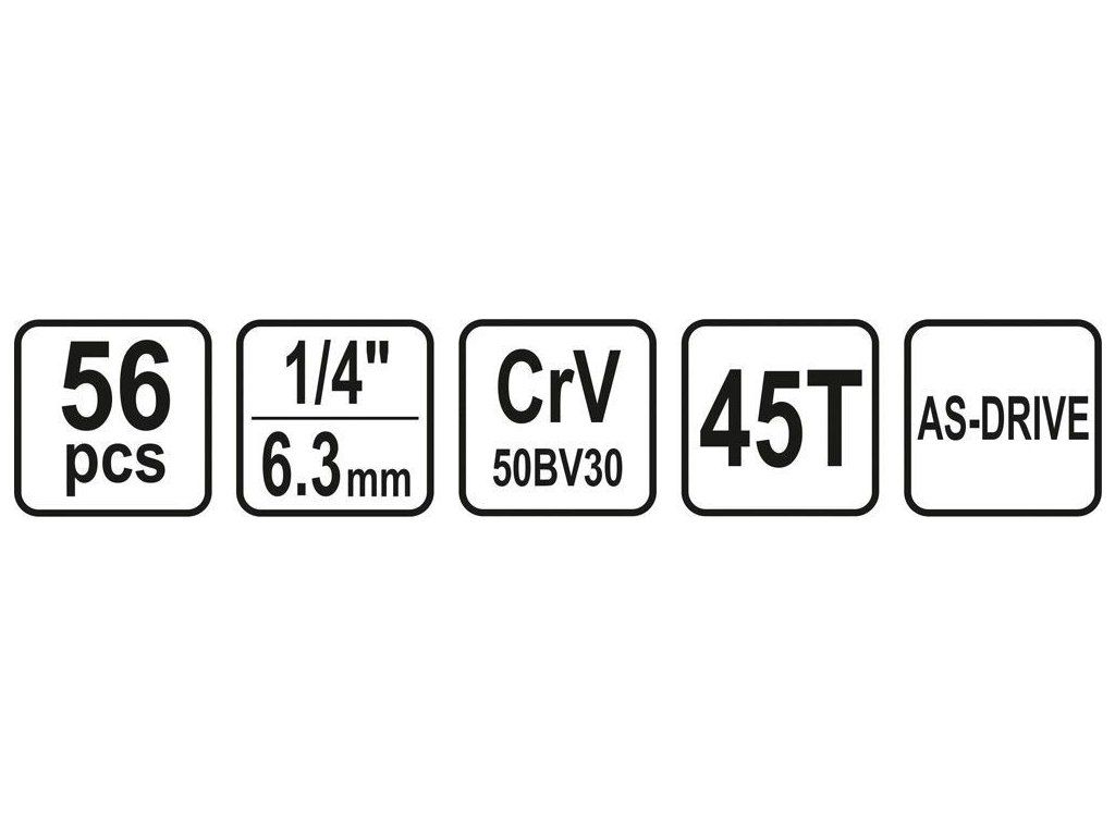 | 8x | nástavec 1/4”: 6; 7; 8; 9; 10; 11; 12; 13 mm (L=50 mm) |