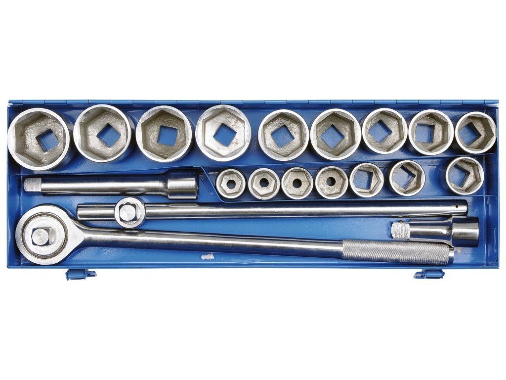 Sada velmi kvalitních nástrčných klíčů. Celá sada je vyrobena z odolné nástrojové oceli tím umožňuje práci vyžadující velmi vysoké zatížení a přesnost. Vhodná pro mnoho servisních činností souvisejících s odšroubováním a utažením závitových spojů různých jmenovitých velikostí. Velmi vysoká pevnost a odolnost proti korozi.