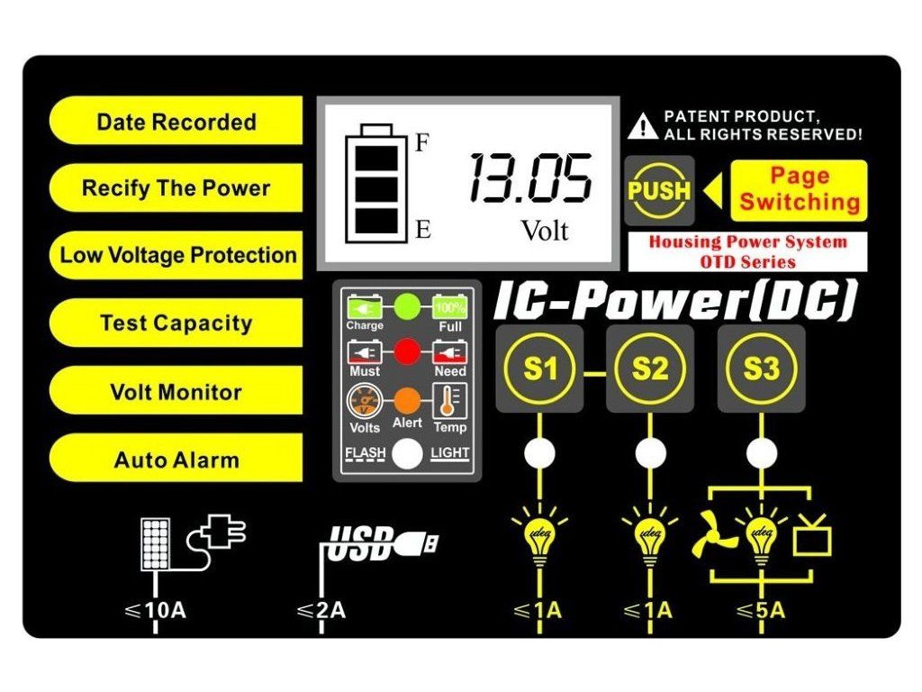 Pro co nejjednodušší způsob využití energie jsou přímo ve víku akumulátoru zabudovány čtyři výstupní porty: 1x USB (2A) a 3x univerzální porty S1 (1A), S2 (1A), S3 (5A). Tyto výstupní porty jsou při nebezpečí hlubokého vybití baterie odpojeny vestavěným regulátorem, takže se nemusíte bát hlubokého vybití vašeho akumulátoru.